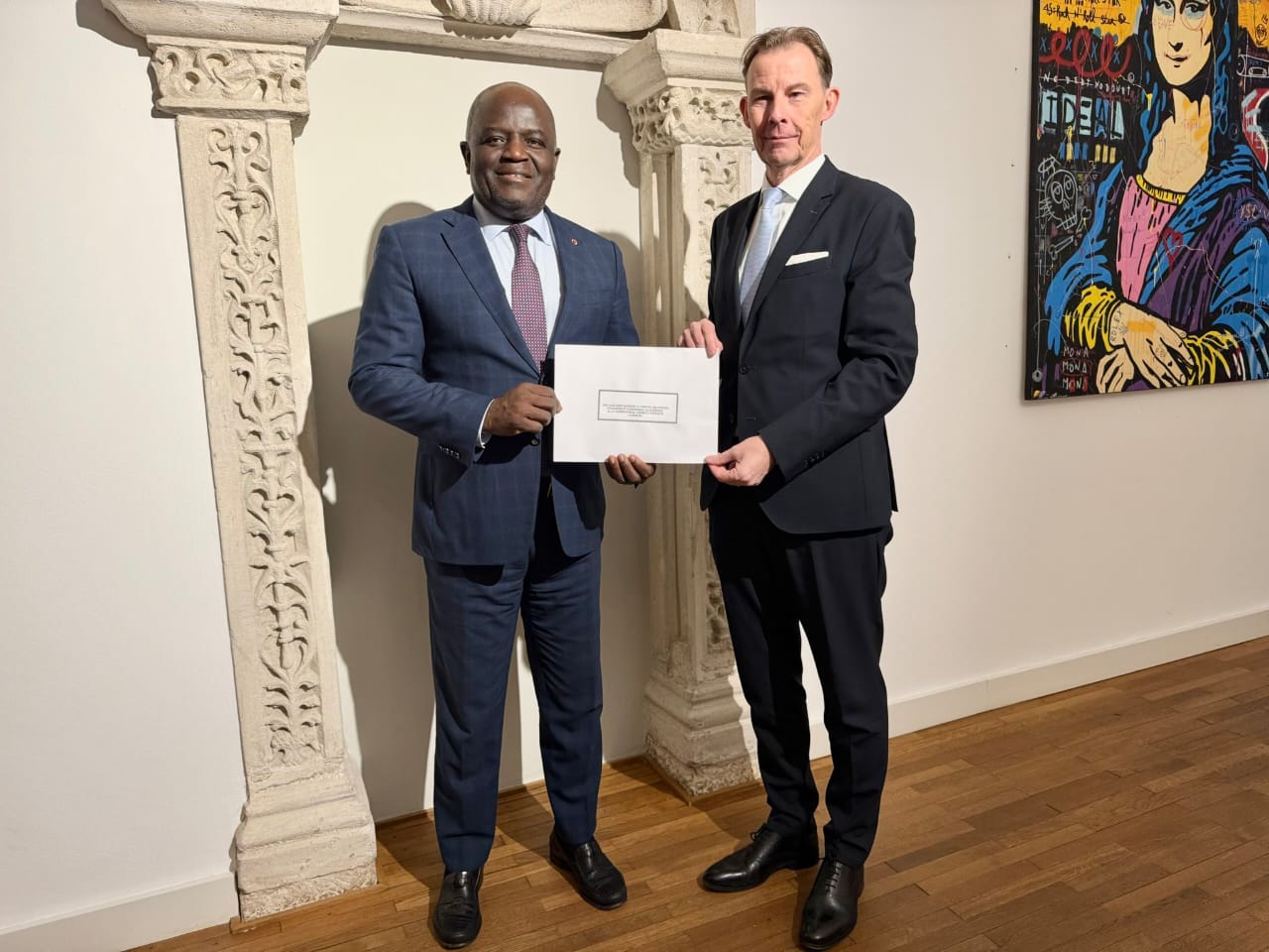 Visite de courtoisie de SEM Eudes Régis IMMONGAULT TATANGANI à SEM BONKOUNGOU, Ambassadeur du Burkina Faso auprès de la Belgique ce mercredi 8 octobre 2025.